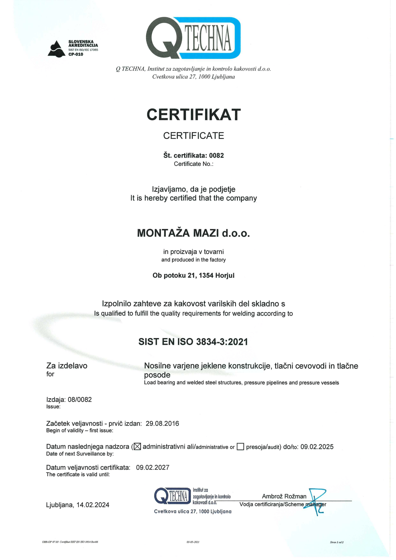V našem podjetju ponujamo visoko kakovost v skladu z zahtevanimi prepisi ter sodobnimi varilnimi aparati proizvajalcev Fronius, Kemppi in Steel.